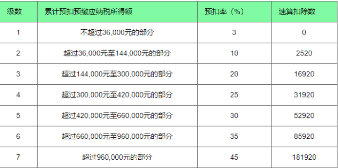 而到了7月份,累计应纳税所得额达到了4.2万元,其中超过3.6万元的部分,适用税率“跳档”到10%,所以7月份应预缴个税600元,比之前几个月多了420元。